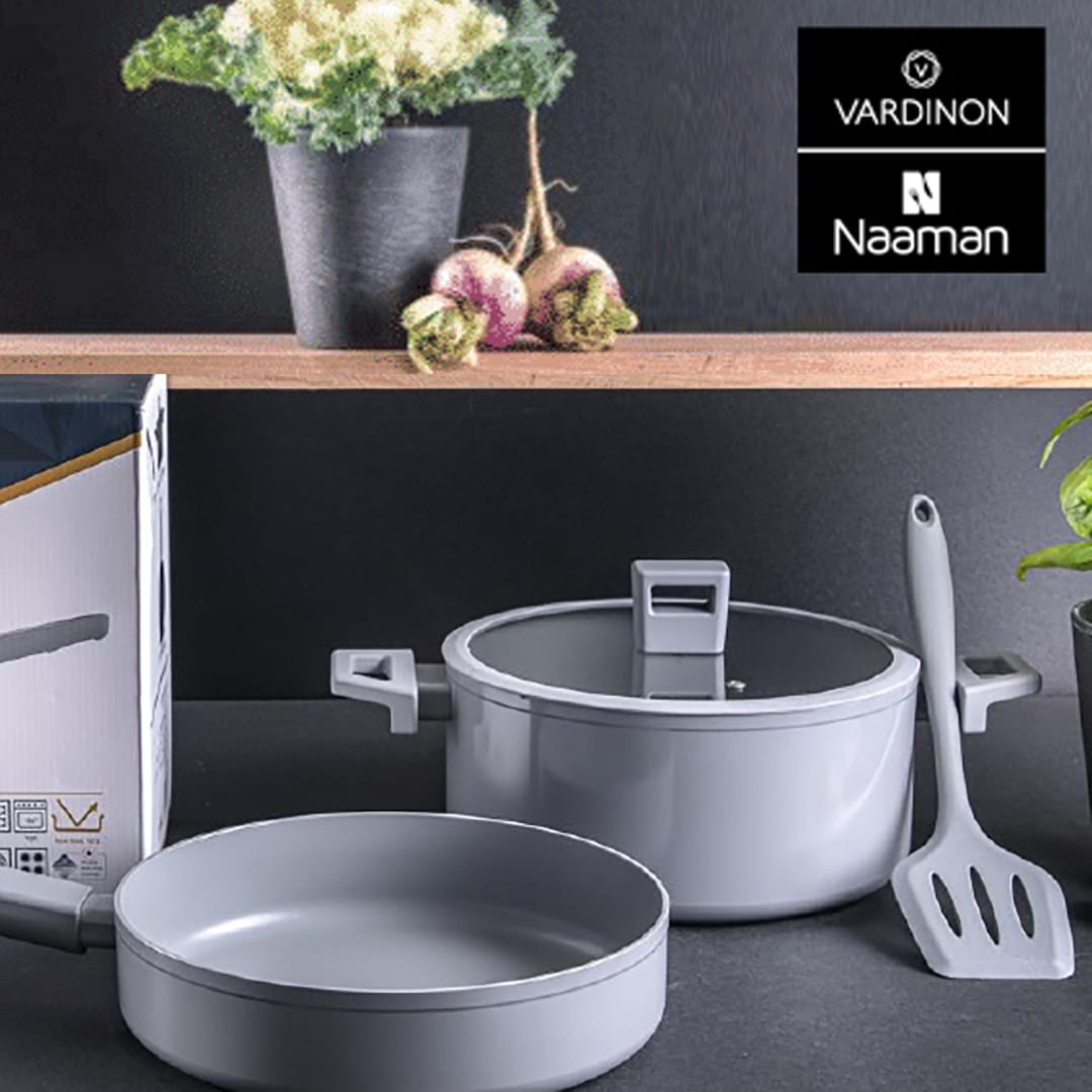 גוף הכלים עשוי אלומיניום להולכת חום מהירה. ציפוי נונ-סטיק למניעת הידבקות המזון ולשימוש מופחת בשומן.