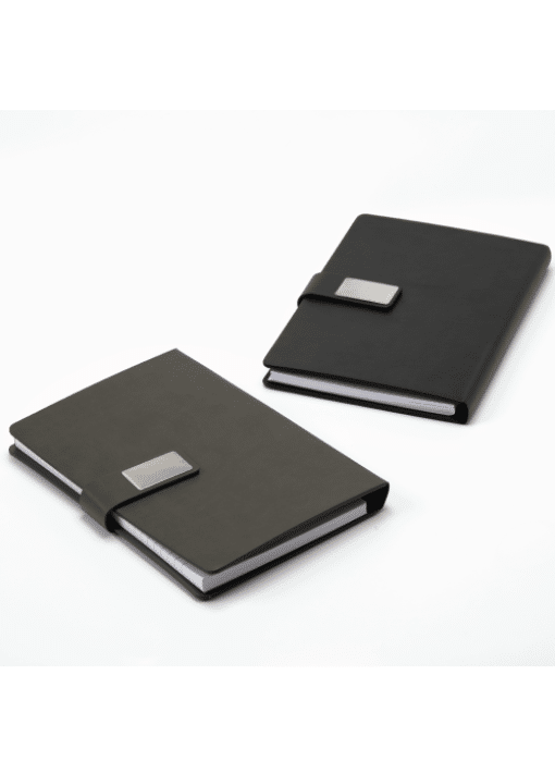 מחברת מכתבייה מעור סיננטי עם אבזם מתכת כריכה דמוי עור THERMO PU המאפשרת חריטת לייזר או הטבעת חום אבזם מתכת ניתן למיתוג על ידי חריטה 80 עמודים כולל פתקי ממו וסימניות מידות: 21×15 ס״מ