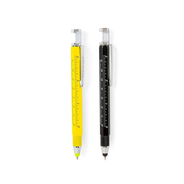 עט ייחודי הכולל כלי עבודה מובנים. מגיע עם 7 פונקציות שימושיות מאוד: פותחן בקבוקים, מעמד לטלפון, רולר, עט כדורי, חורט, מיני ראש שטוח ומברג פיליפס. אין אפשרות לבחור את צבעו של המוצר.