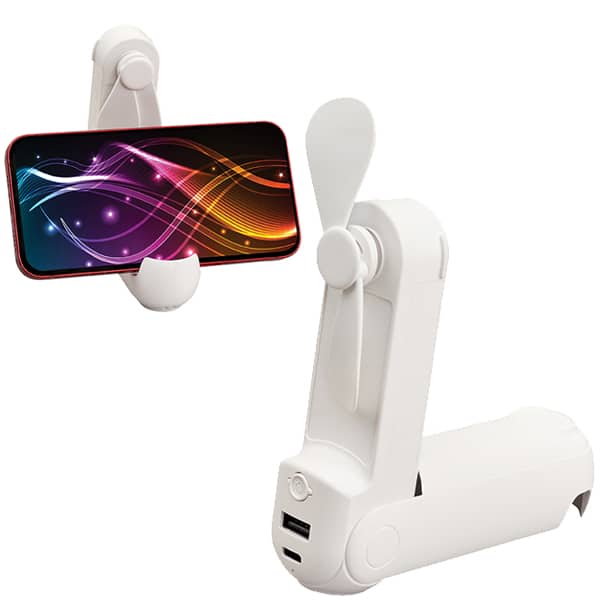 פאוור בנק סוללת גיבוי 3000mAh משולב עם מאוורר ופנס.
