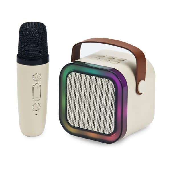 רמקול קריוקי עם מיקרופון בסגנון רטרו.