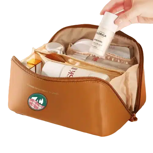 תיק איפור דמוי עור עם נפח אחסון גדול